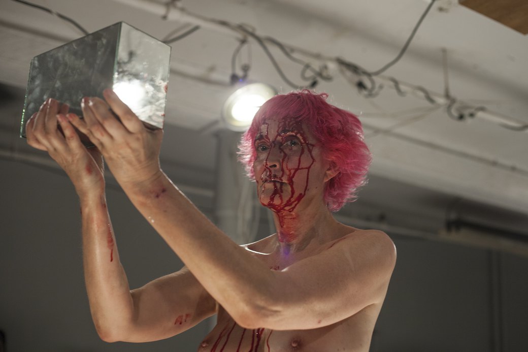 Confrontational and jarring, the artists at once built up notions of the beauty of the body and tore them down on Friday during the third weekend in Grace Exhibition Space‘s month-long “Climate Change” series, featuring performance artists from all over the world as part of the Brooklyn International Performance Art Festival. Friday’s lineup, including Ron Athey, Congelada de Uva, W Christiawan, and Peter Dobill, was as well curated as the previous two weeks at Grace (Action Poetry and La Poncha Nostra). The performers took their marginalized bodies and used their own pain and suffering as tools to create beauty, to shock, and to deify the flesh in all its forms. The perpetual dance of hiding and exposing the self through art became literal, visceral, and bloody that night at Grace Space.