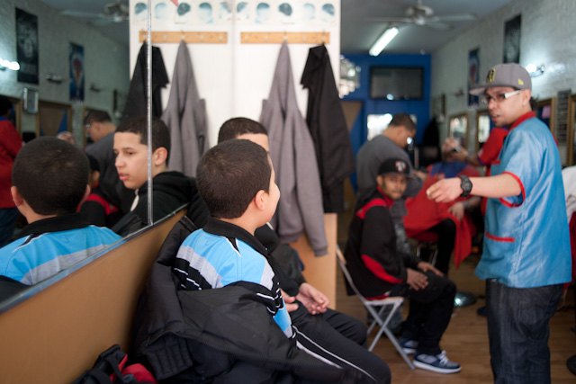 You can have a chat with a customer in line about his daughter who is just graduating FIT (he will show you her artwork on his phone), or with a barber at work who doesn’t like to be in photos but will agree to pose soon enough. Besides you can always get away with a quick candid shot. For me personally, photographing the barbershops is a bigger project that I intend to work on over a longer period of time and this is just the beginning. To start it off nicely, I invited our wonderful Bushwick Daily photographers, Peter Dressel and Thérèse Maher to send in their shots of Bushwick barbershops.  Enjoy!  Â