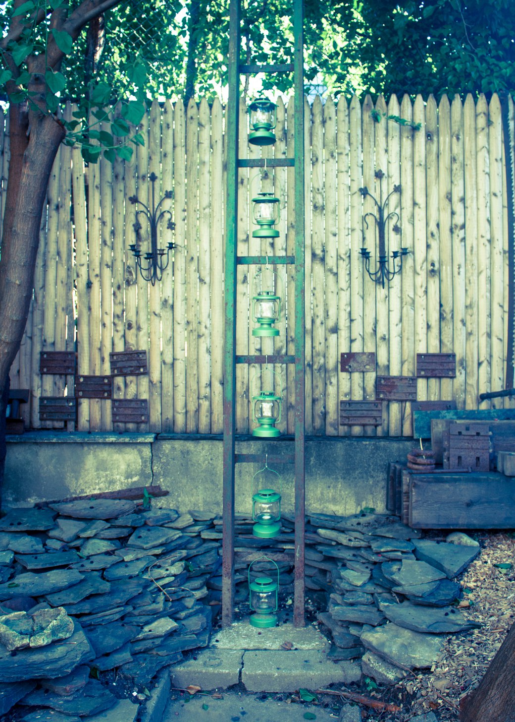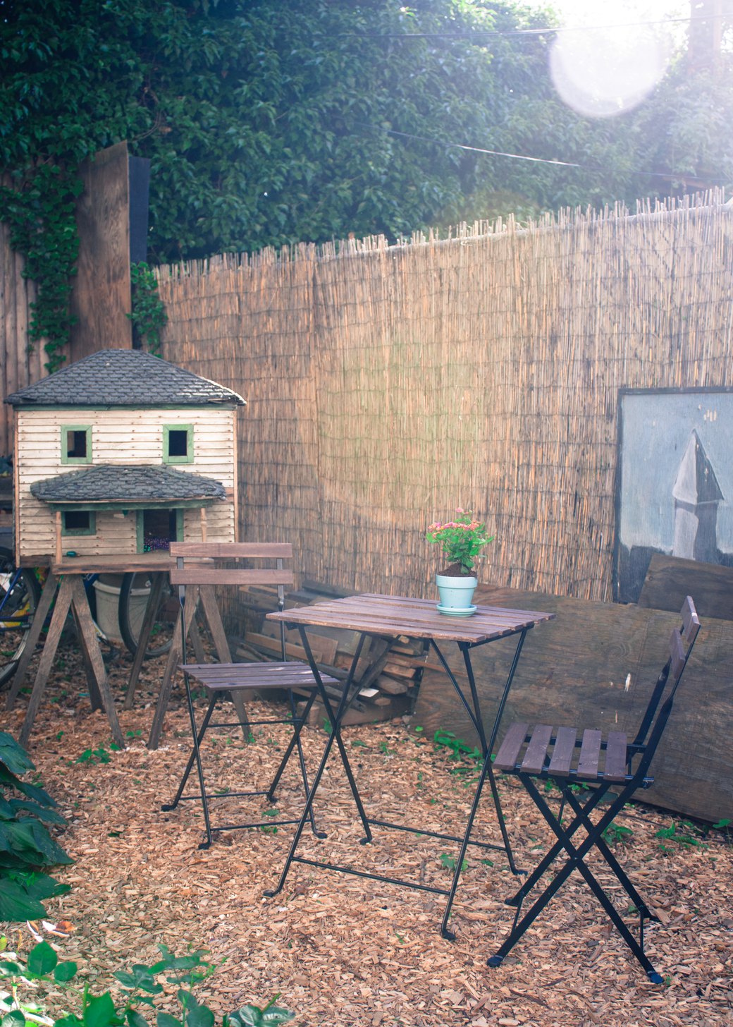 First we dropped by Tom’s spot over on Wilson Ave. Tom and Claudia really amped up what used to be a trash mound in their backyard using Tom’s woodwork and sculptures. It’s now a secret paradise.