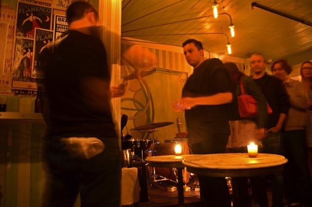 Eric Feldman moving fast to keep the beer pours coming at the Braven Kickstarter Launch Party.If Braven Brewing Company is news to you, here’s the deal with the brewery, folks. Four years ago Marshall Thompson and Eric Feldman simultaneously had the idea to buy a homebrew kit in a conversation now immortalized in their Gchat histories. “The first time you brew it bites a lot of people,” said Eric. “It gets into ya.” The bug certainly bit Marshall and Eric and this spring they decided to turn their favorite boozy pastime into a more lucrative endeavor with plans to open a full-scale brewery and taproom (!) in Bushwick within the next year. Operating as a “gypsy brewery” – brewing on another brewery’s equipment – will tide them over while they raise the funds to buy their own equipment and lease a space. Here’s where we come in. If we want our own Bushwick brewery we need to put our money where our mouths are by donating to the Braven Kickstarter campaign, currently in full swing. At pub time they had $10,311 of the 20K goal with 24 days to go. They have great swag as rewards, but really the best one is just finally getting a neighborhood brewery!