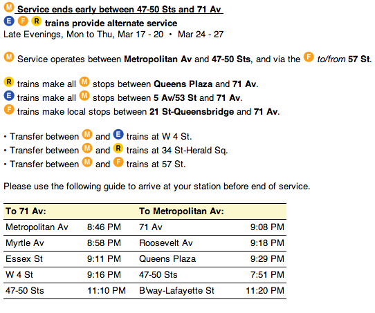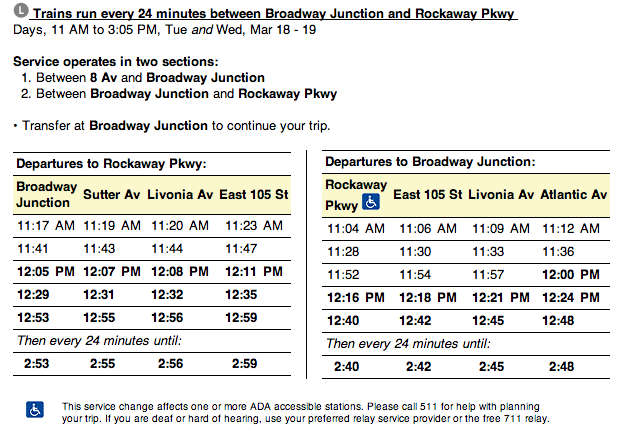 Looks like the L train (and M…and J) want to take part in Flashback Friday and revisit old service interruptions. It has gotten to the point where service changes are nothing out of the ordinary and instead of crossing my fingers that the Bushwick trains will be running smoothly each week/weekend I have instead started anticipating how weird/inconveniencing their service may be. Apparently the J train (oh beloved, trusty J train) felt a little excluded and has decided to switch things up a bit as well (cue meme: J train why you no stay normal?!) . Take a look: