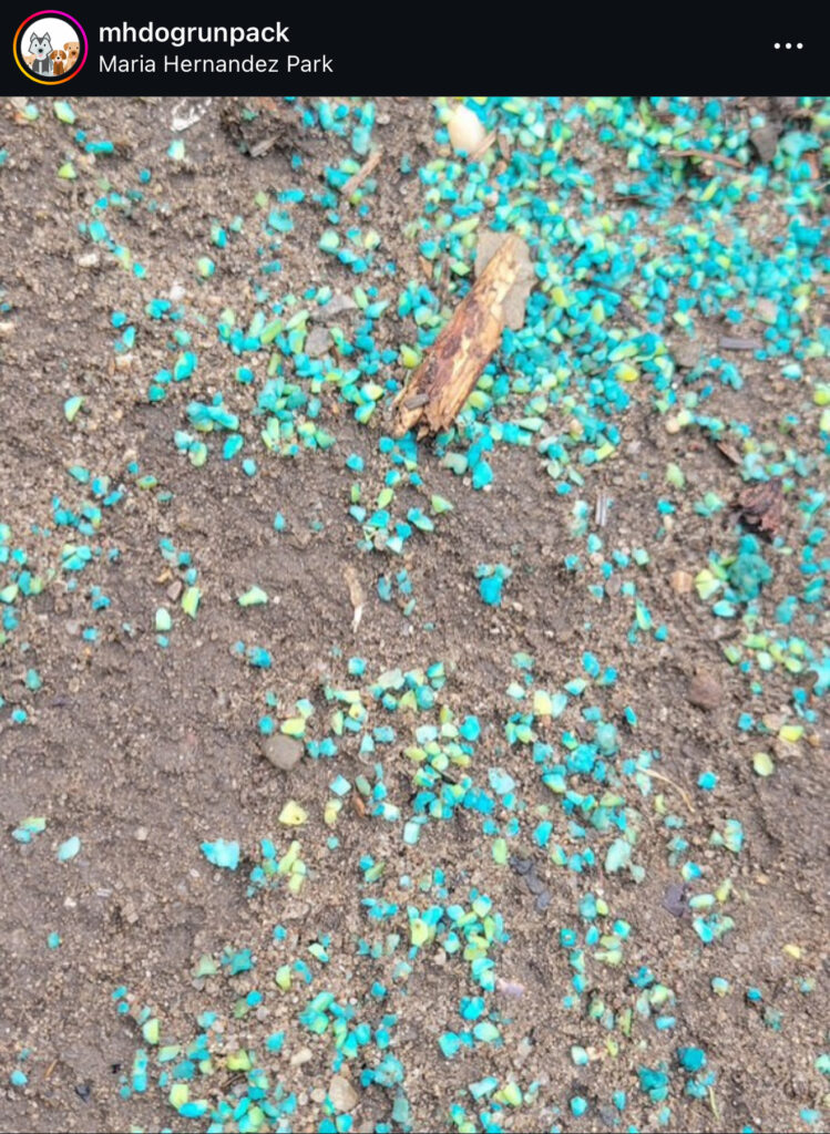 The Maria Hernandez Dog Run Pack volunteer noted that Parks officials had subsequently confirmed the substance was indeed BlueMax Meal Bait after consulting with the contractor assigned to the job.