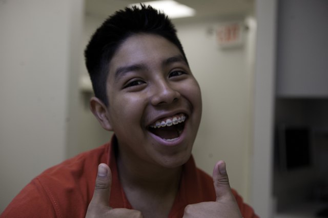 The boy stands up from the chair and dedicates a large grin to my camera. “Those are some cool braces!” I have to admit. “I mean Yo! Braces!”